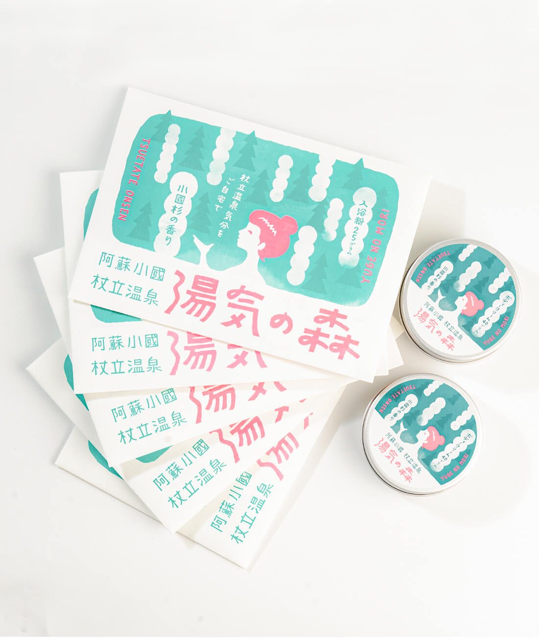 温泉地・小国町の日常に立ちのぼる「湯気」と、町の約8割を占める森の風景から着想を得て開発した入浴剤。杖立温泉を自宅のお風呂でも味わえるよう、香りや使い心地、世界観まで含めて設計しました。販売累計14,414個(2026年1月時点)。