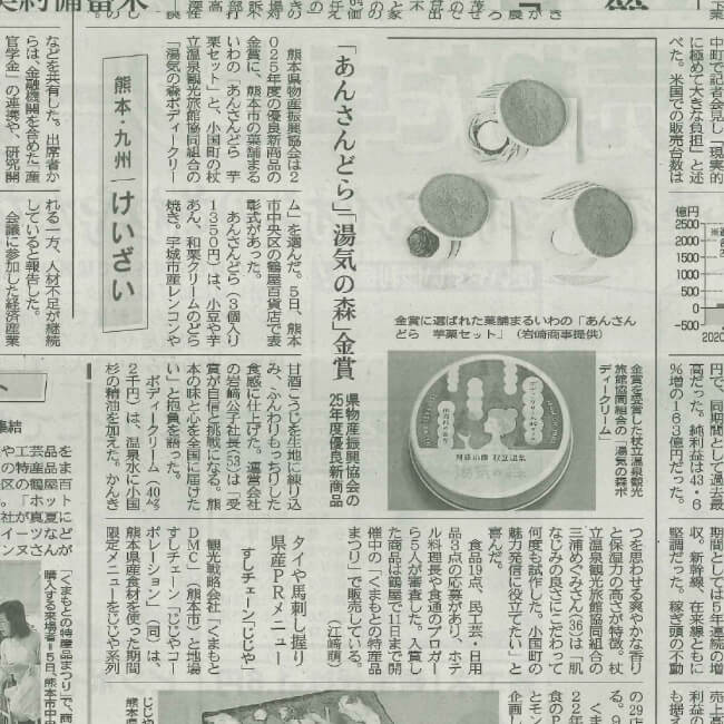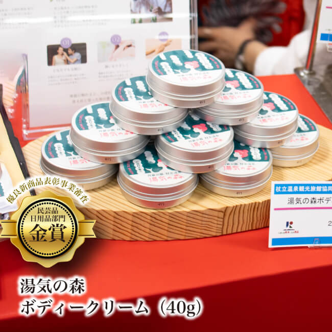 温泉地・小国町の日常に立ちのぼる「湯気」と、町の約8割を占める森の風景から着想を得て開発した入浴剤。杖立温泉を自宅のお風呂でも味わえるよう、香りや使い心地、世界観まで含めて設計しました。熊本県優良新商品 金賞受賞